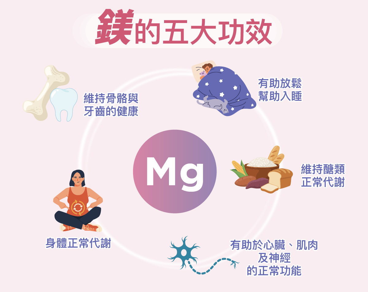 鎂是人體必需的礦物質之一,和鈣、磷一樣對維持身體正常運作非常重要。