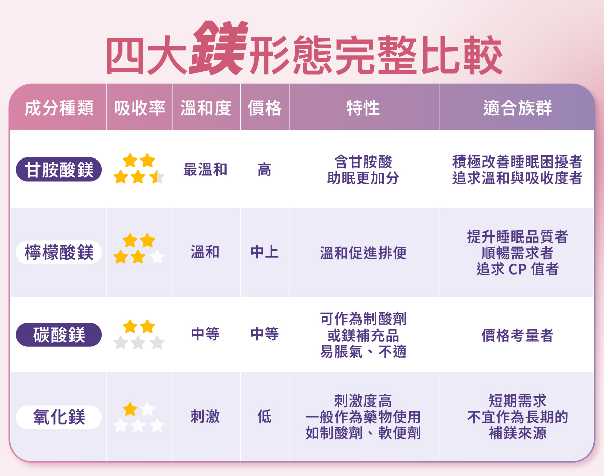 6. 四大常見鎂種類比較。哪款最適合自己?
