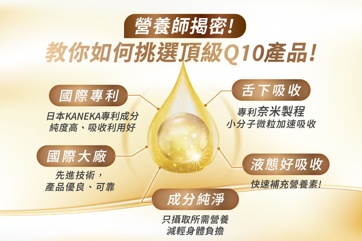 建議選擇具專利、高吸收利用率與良好品質控管的Q10,才能發揮最大效益,長期守護您的健康與活力。