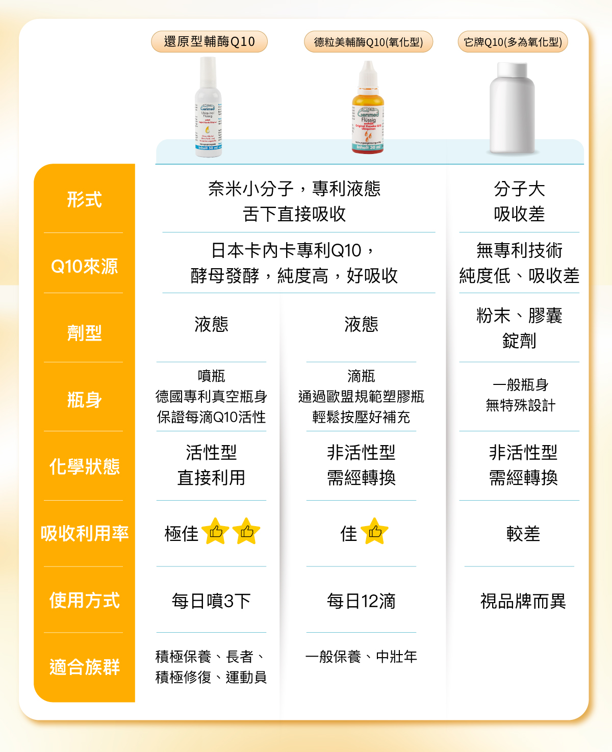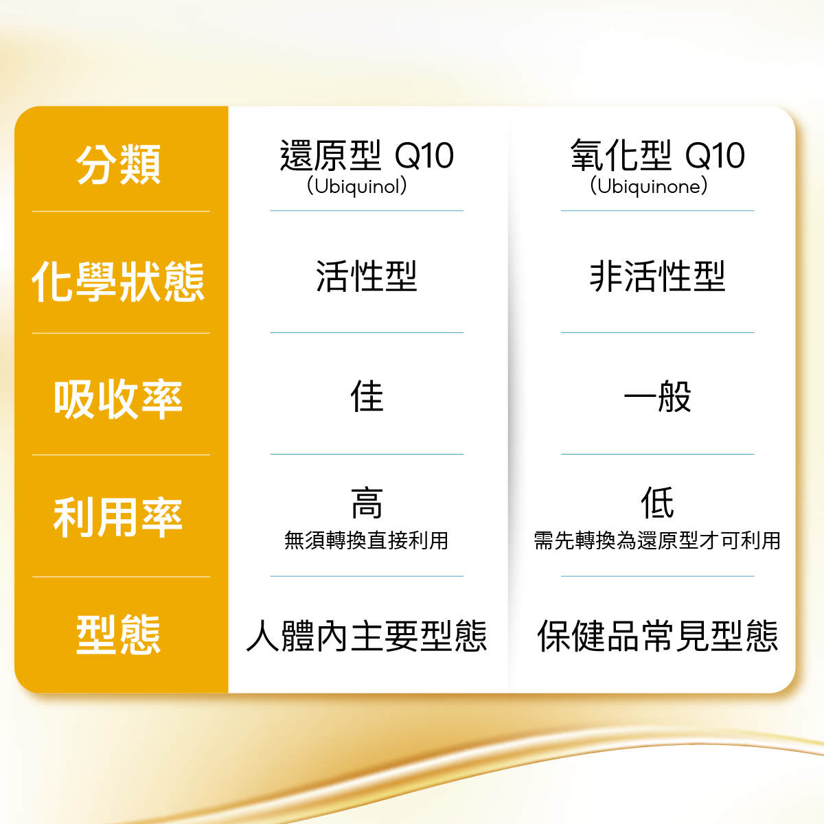 還原型 Q10 / 氧化型 Q10 比較表